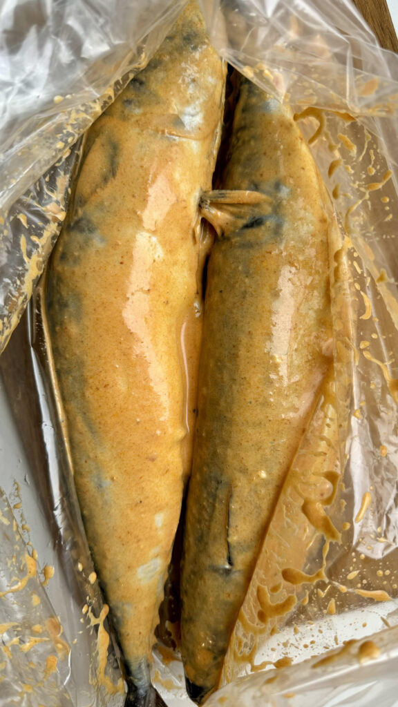4. Thoroughly rub the marinade into the fish, put it in a bag or container and put it in the refrigerator for 2-3 hours. It’s good if the fish sits in the marinade overnight, then it will be more saturated with all the marinade juices.