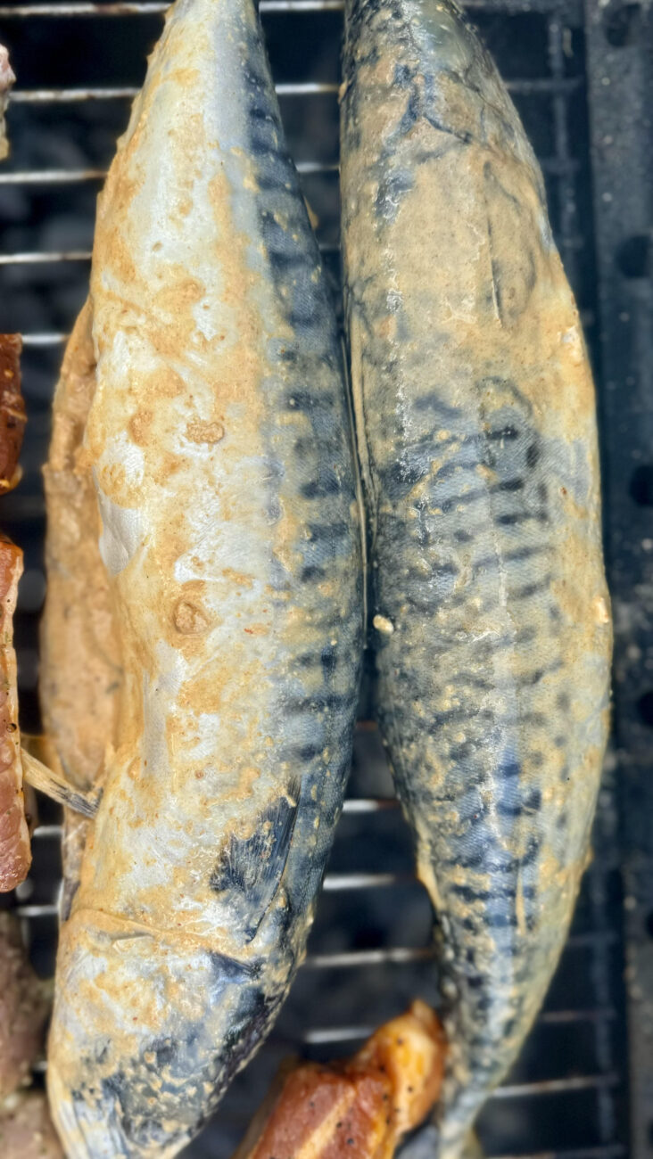 2. Place the mackerel on the grill and fry for 7 minutes on both sides.