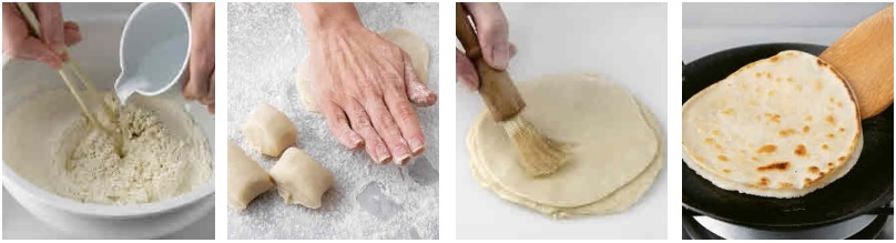 preparation1. Sift the flour into a large, heat-resistant bowl and slowly pour in the boiling water, stirring with chopsticks or a wooden spoon. Do not add more water than indicated in the recipe, even if the dough seems dry. Set aside to cool. |