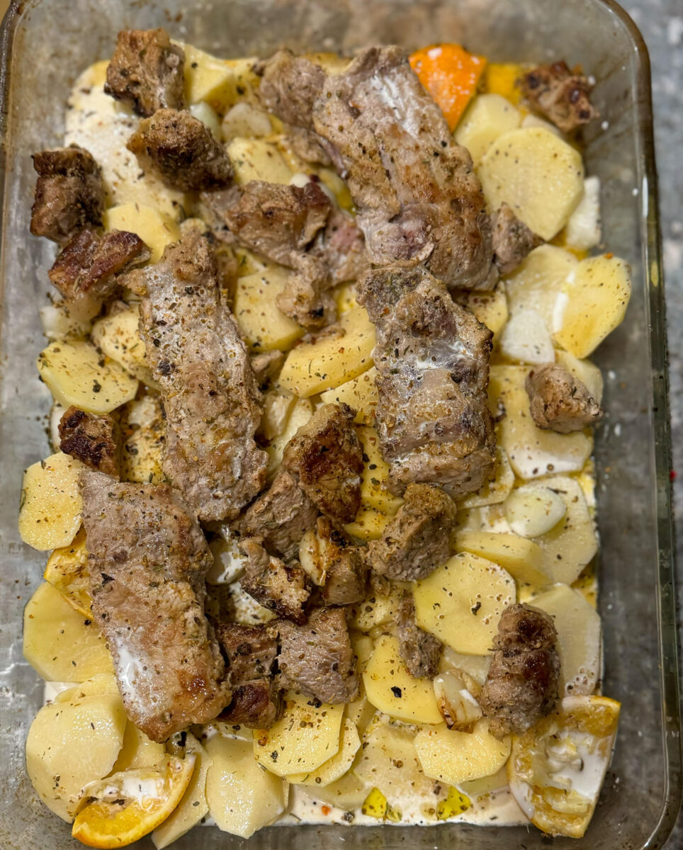 A simple and at the same time satisfying dish, potatoes and meat combined with herbs and cream give a delicate and at the same time piquant taste. This dish is perfect for lunch or a holiday dinner.